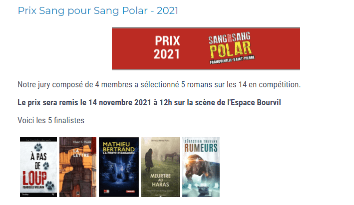 - 14 novembre 2021 Salon sang pour sang polar à Franqueville Saint-Pierre