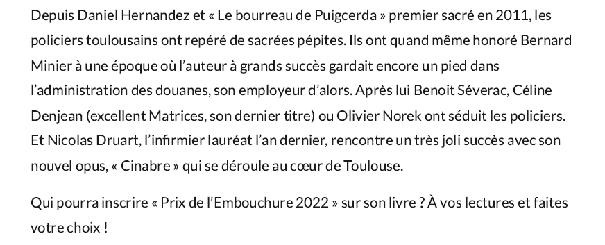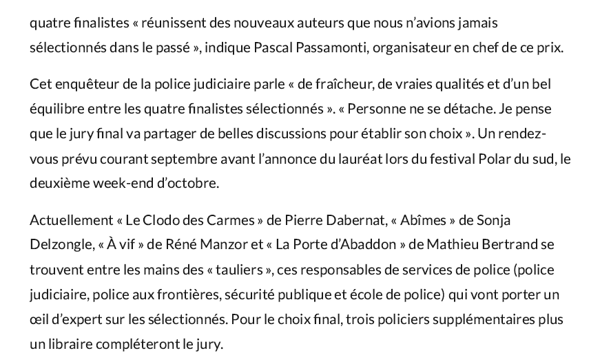 Un style fluide et prenant, une plume de très grande qualité, acérée, vive et addictive.